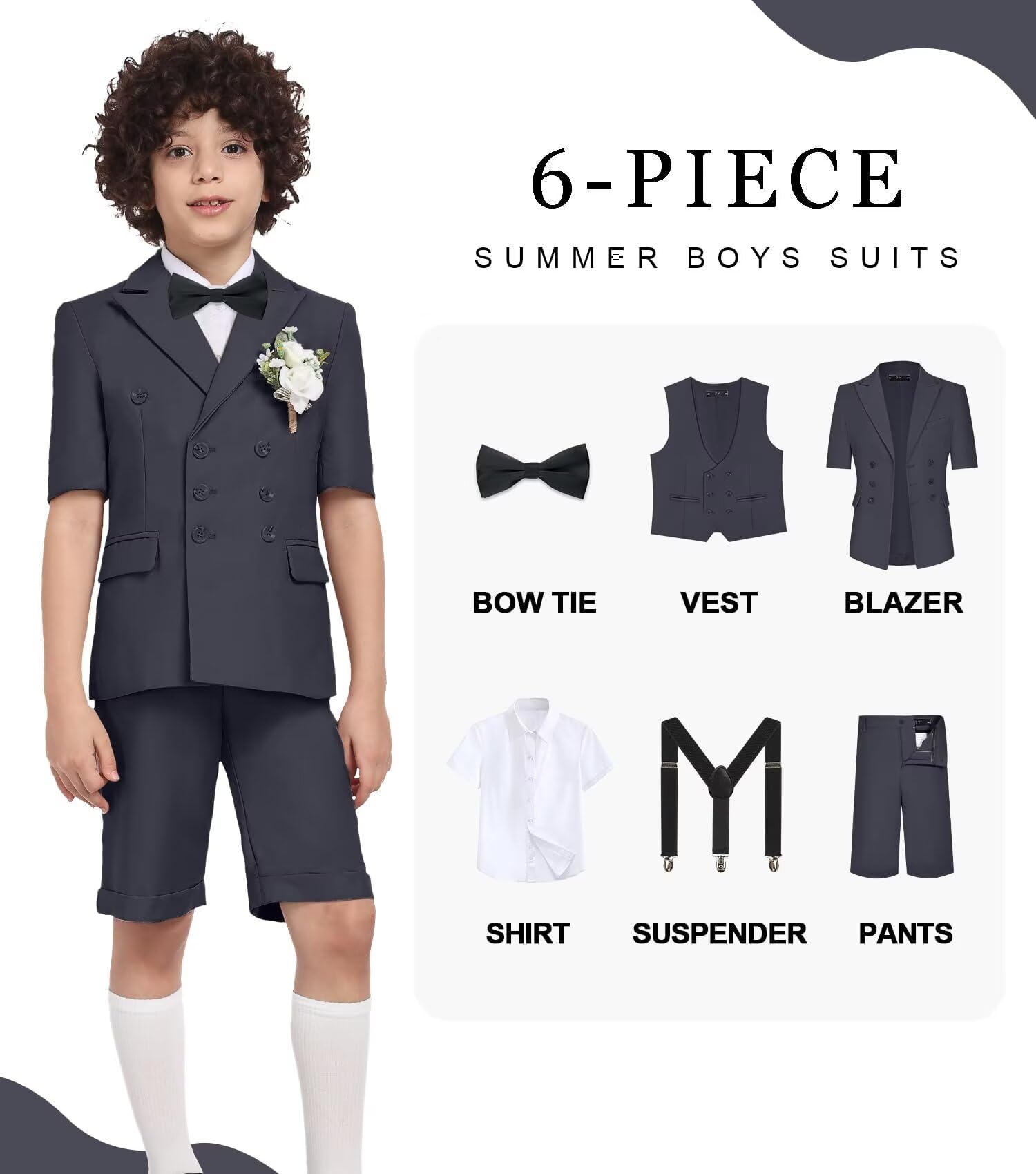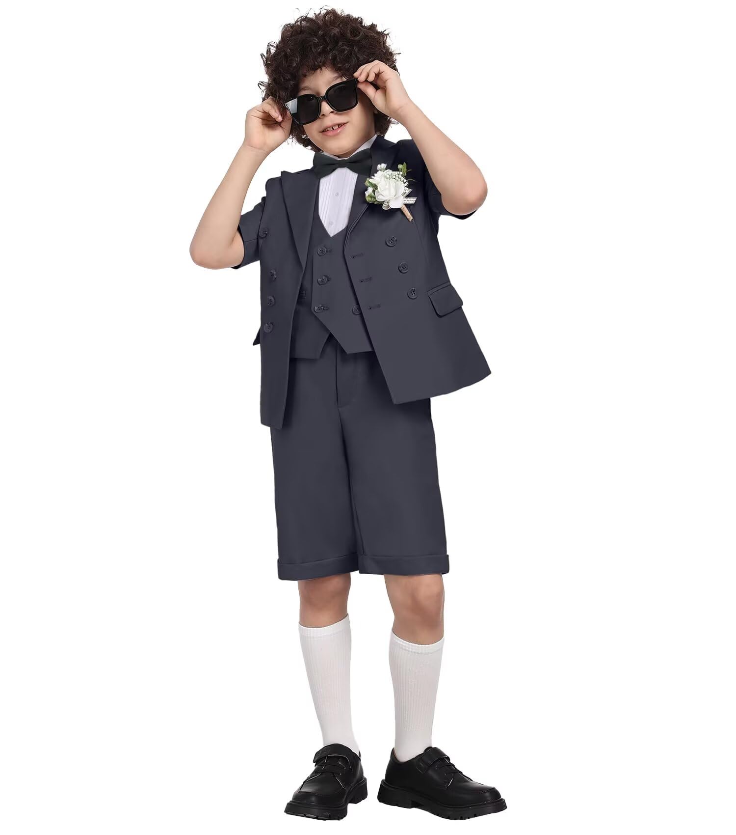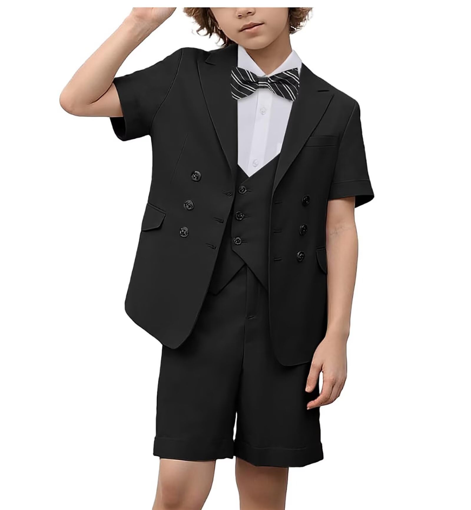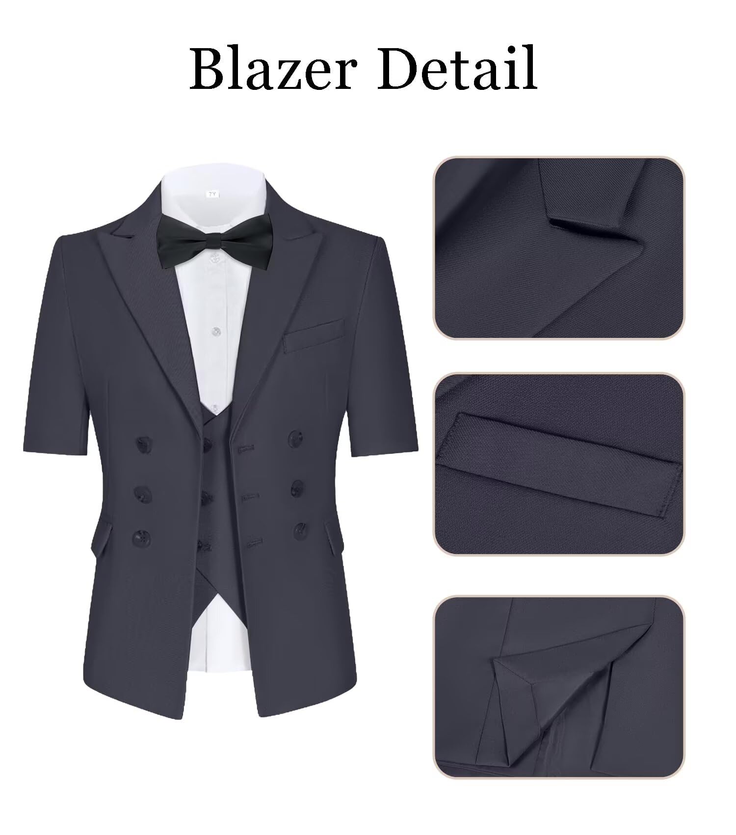 3 Piece Boys Suit Slim Fit Sets Double Breasted Solid Peak Lapel Short Jacket Vest Pant for Wedding Prom