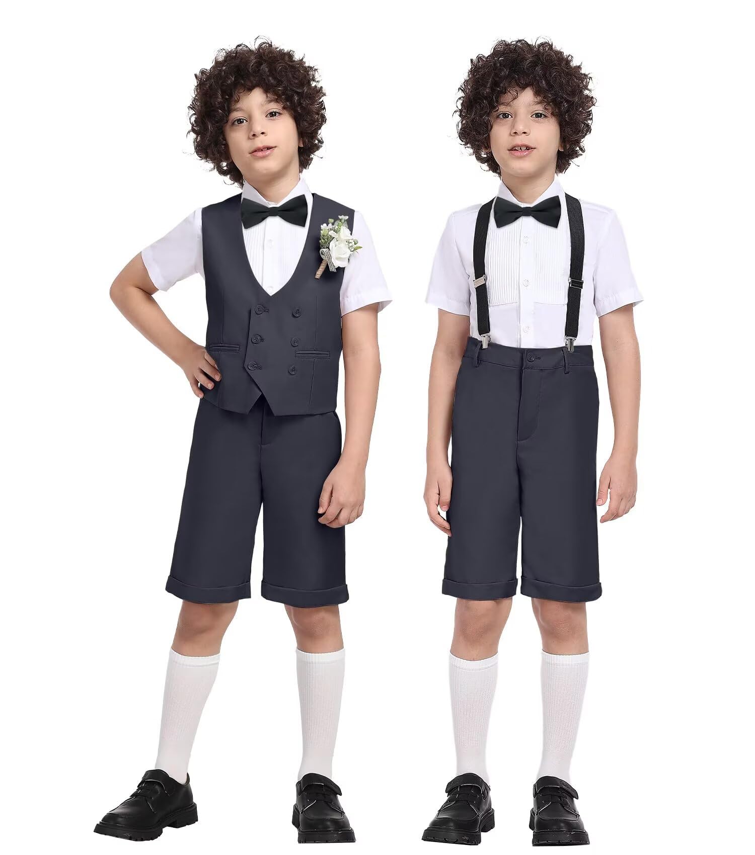 - The Toddler Suit 3 Piece Wedding Suit Package:Jacket + Shorts + Vest.