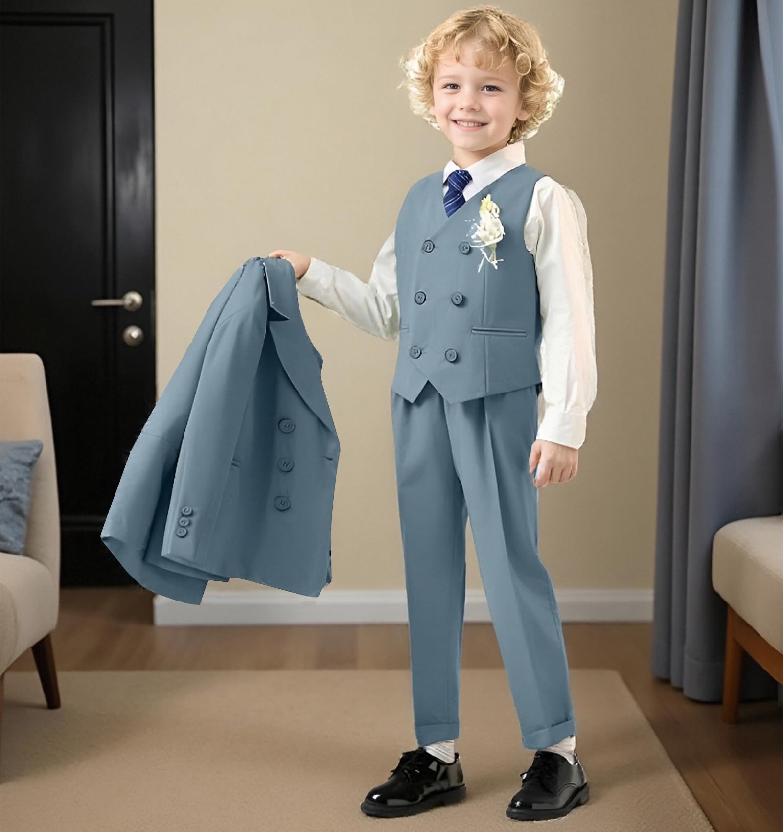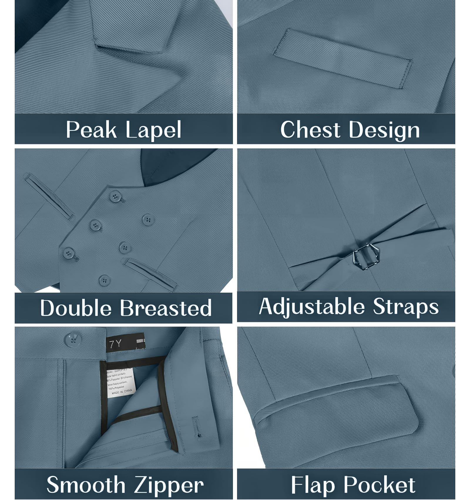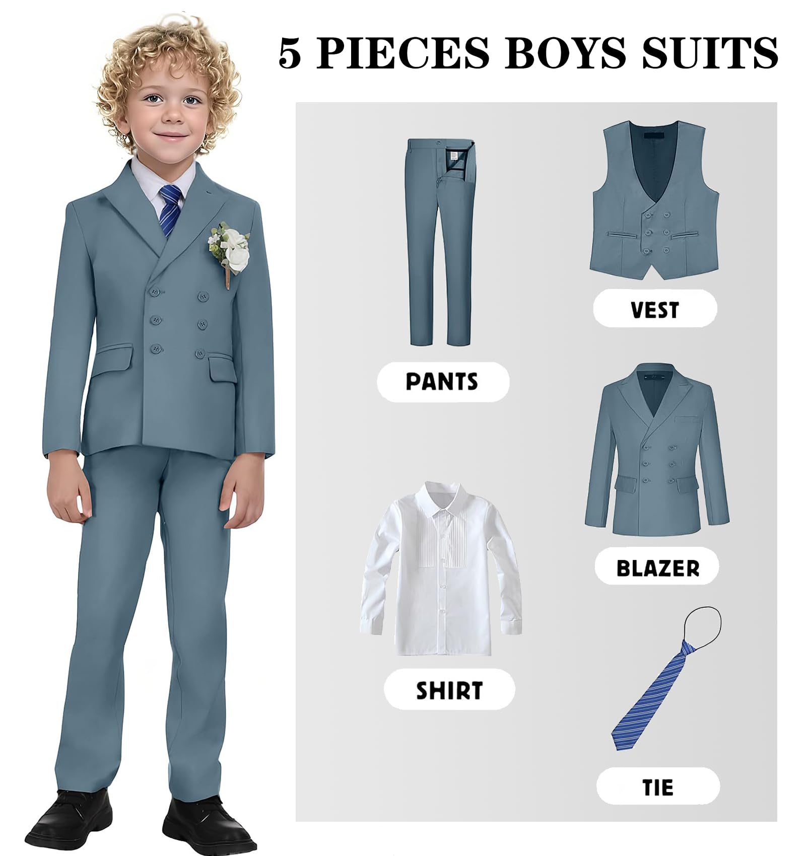 5 Piece Suit for Boys Slim Fit Formal Suit Double Button Kids Wedding Ring Bearer Outfits Tuxedo Suit Set